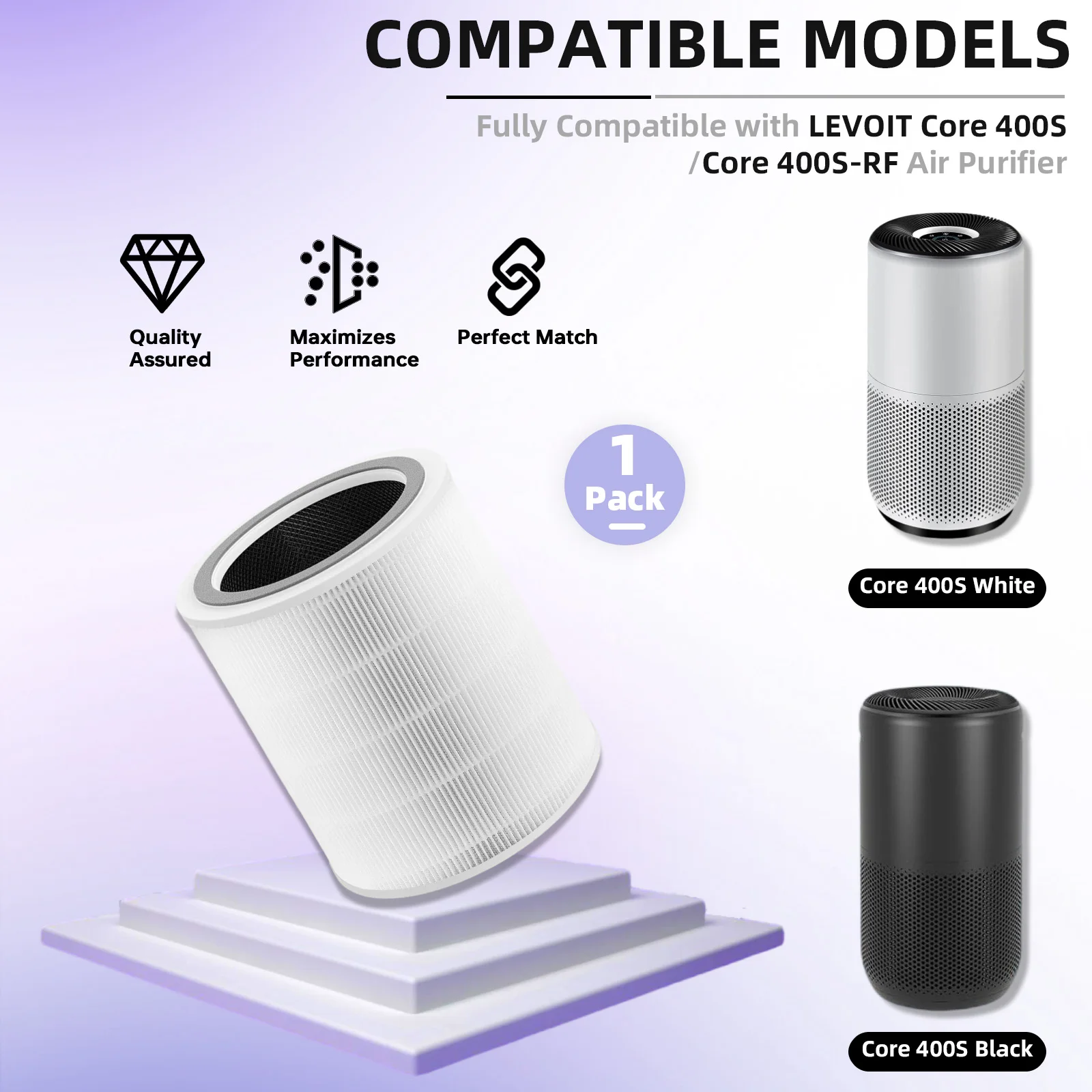 LEVOIT jádra 400S / 400S-P vzduch čistička náhrada filtr, 3-in-1 hepa filtr aktivován uhlík filtr, díl core400s-rf