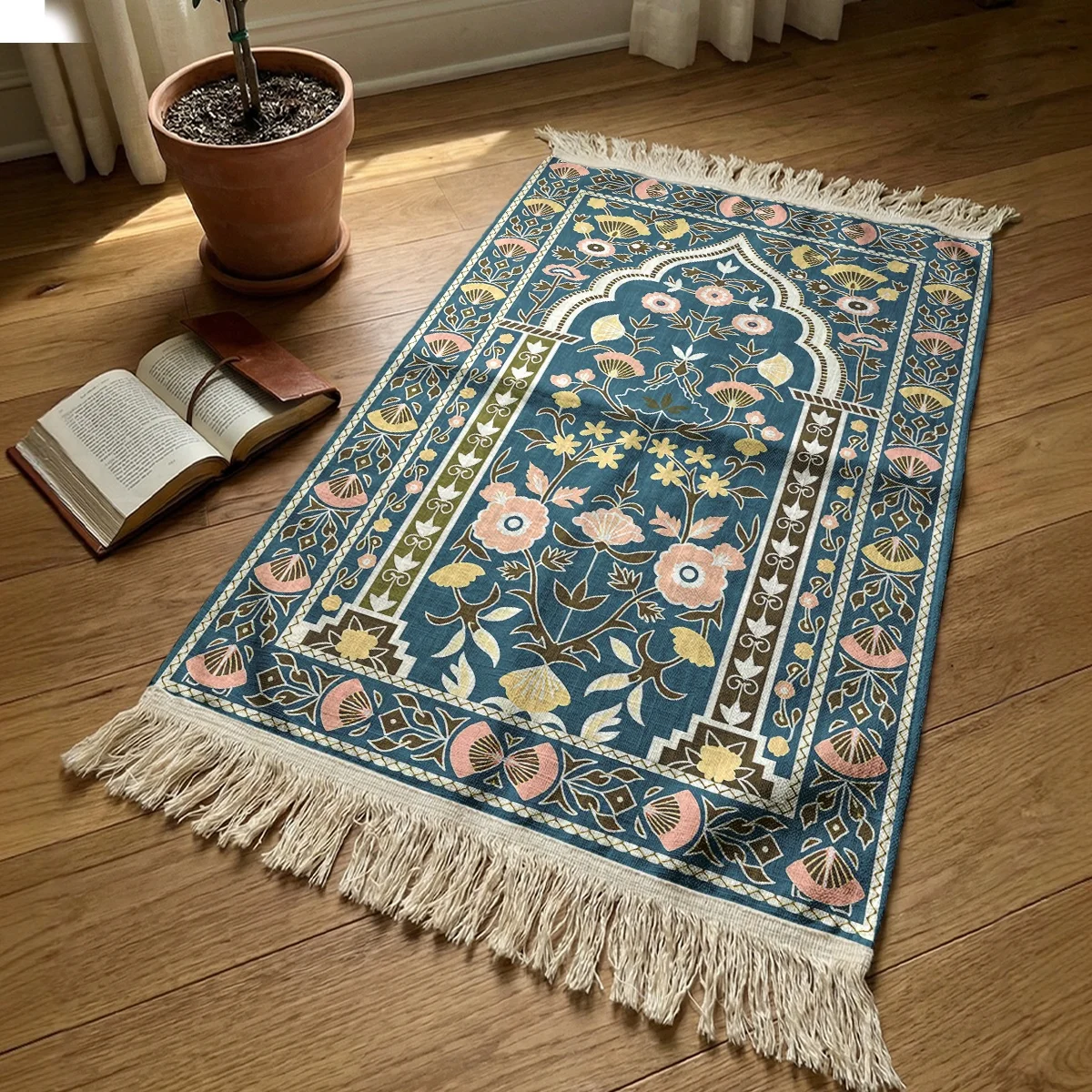 Mughal styl mešita oblouk květinová střih střapcem modlitba rohož, měkké bavlna islámské dámská modlitba flauš, eid al fitr dar