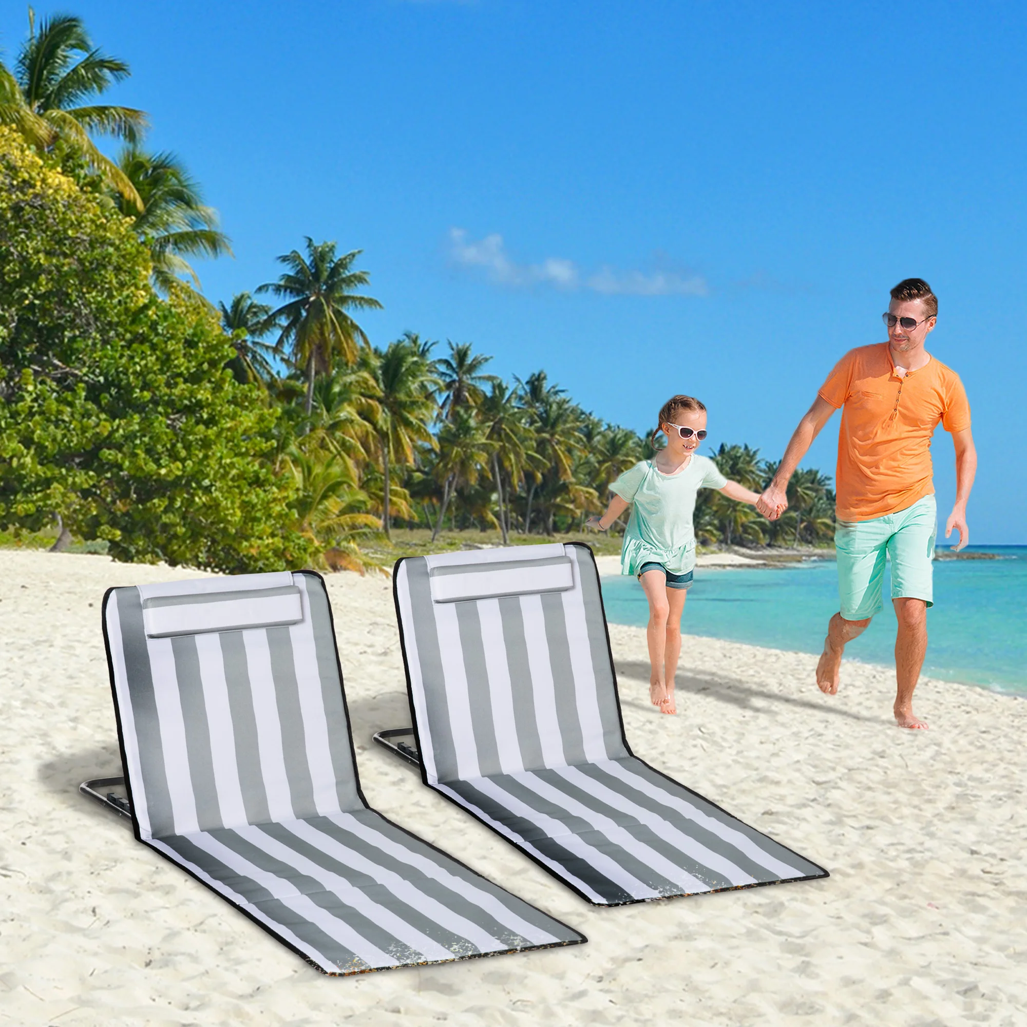 2se pack pruhované pláž aula chairs s podhlavník skládací přenosné pláž rohož s opěradlo pro pláž kaluž patio kemping