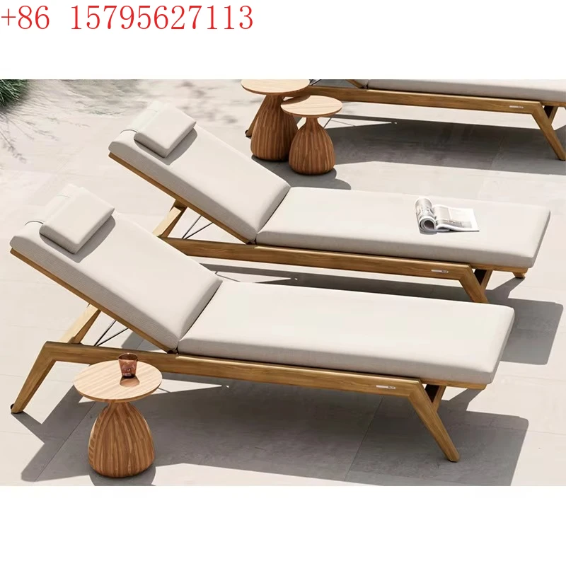 Teak outdoorové lehátko patio sad nábytek luxusní celistvý dřevo outdoorové vila plavání kaluž slunce lehátko s polštářek