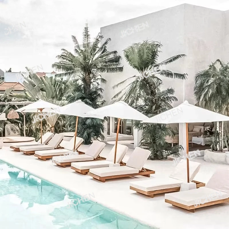 Léto slunce postel outdoorové teak dřevo slunce lehátko s vodotěsný textilie sad kaluž nábytek chaise