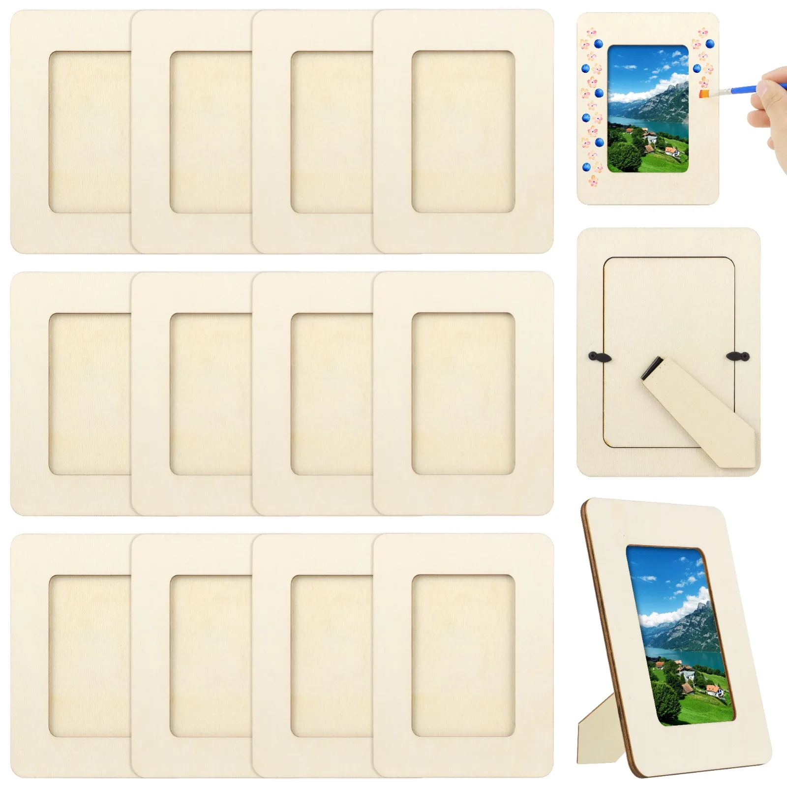12pcs/set nedokončené dřevěný fotka rámy řemeslo rámy sada paintable malba formulovat pro DIY projekty škola řemesel domácí dekorace