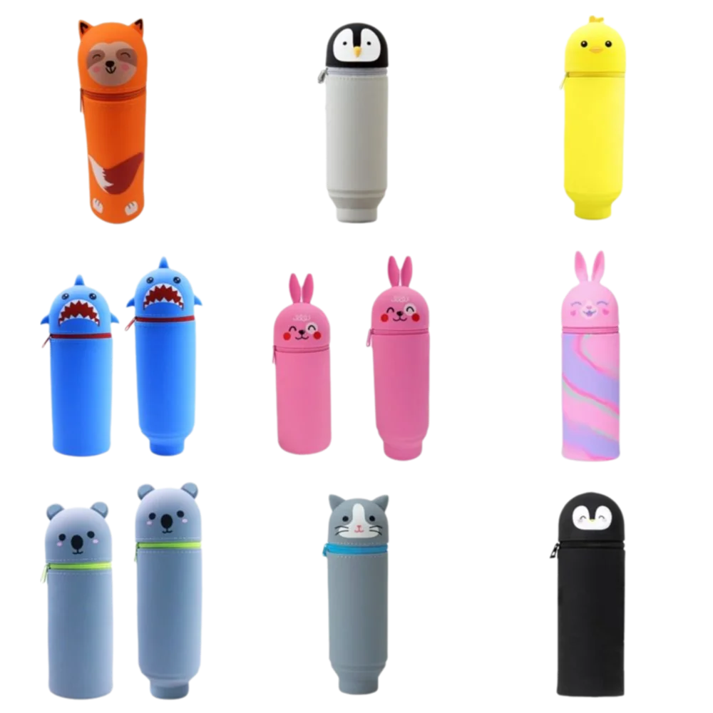 1ks roztomilá skládací tužka pouzdro živočich vzhled silikon papírnictví organizátor broken-resistant králík kukléřka mléčová pero skříňka pro studenti