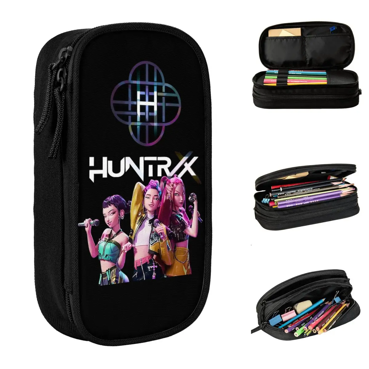 Huntrix s logem tužka případech kpop běs hunters pencilcases pero držák pro student velký pytle škola zásoby na zip papírnictví