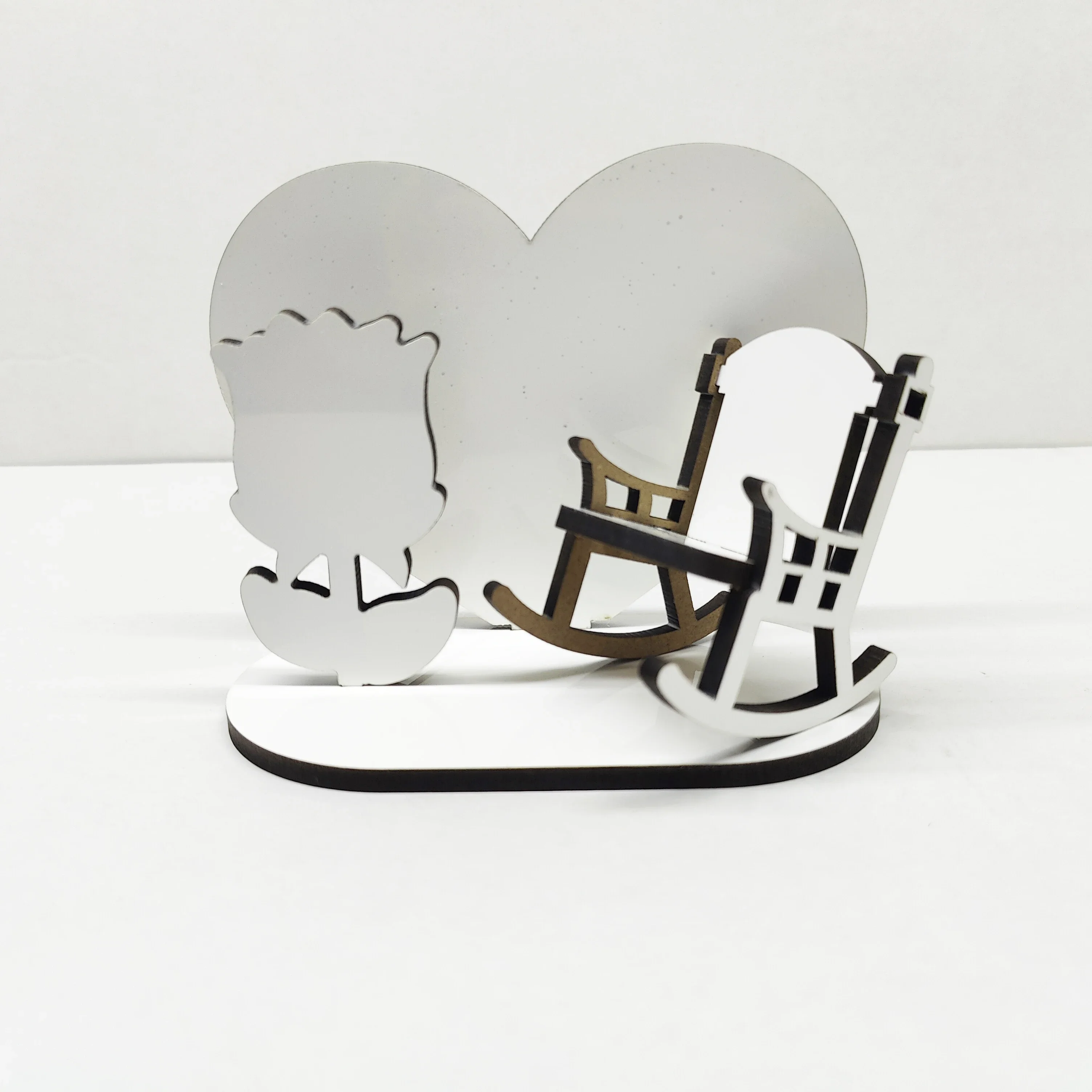 10 sets/lot 150x117mm heart-shaped sublimace blanks s rose/rocking židle design svíčka báze topologického prostoru fotka rámy pro paměť dárky
