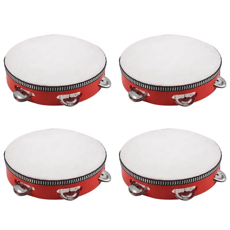A99i-4pcs 8inch hudební tambourine tamborine buben kolo příklepová dar pro KTV večírek červená