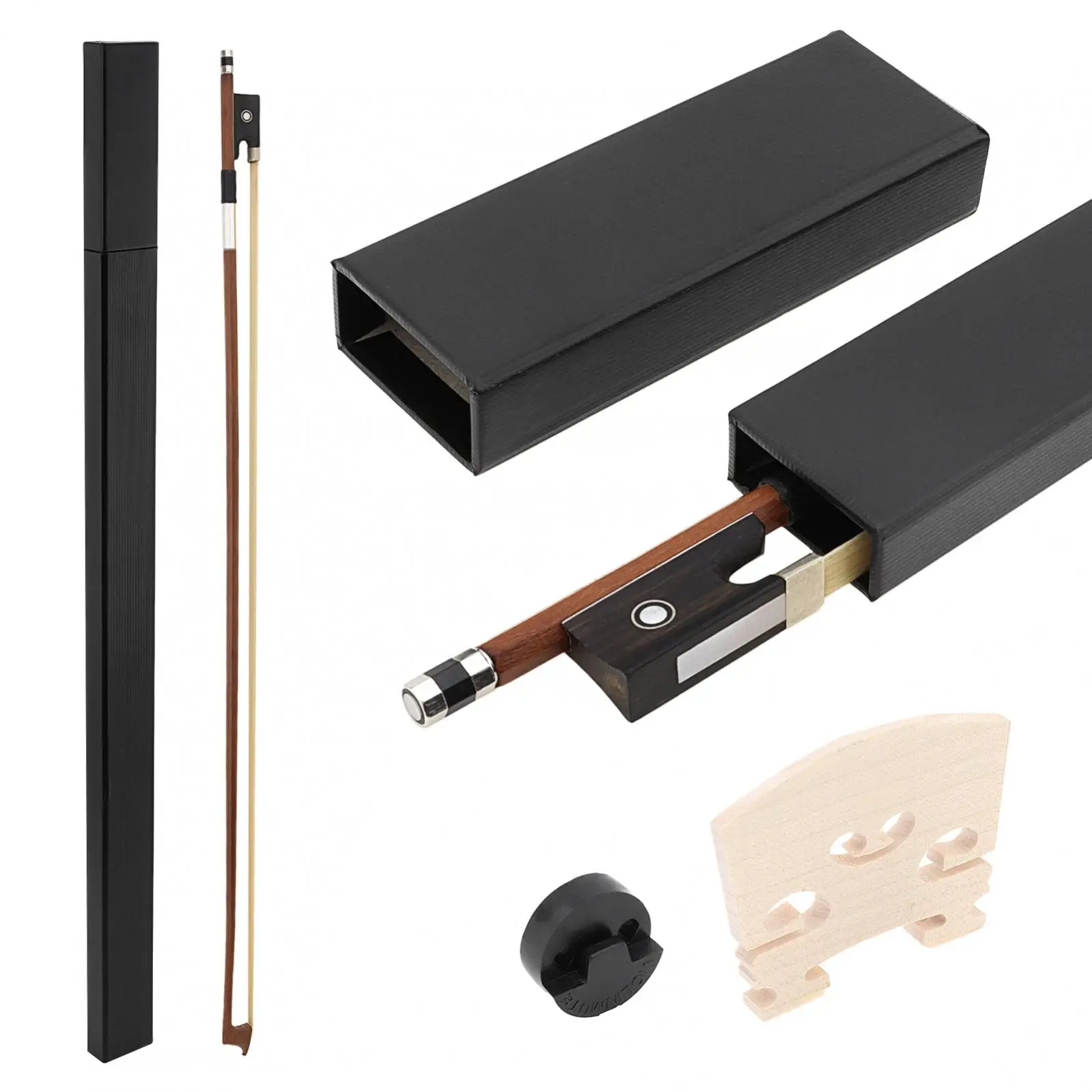 Brazilwood ebenového žába 4/4 housle luk s javor most, guma mutes a fretboard nota nálepka, plný rozměr housle luk sada