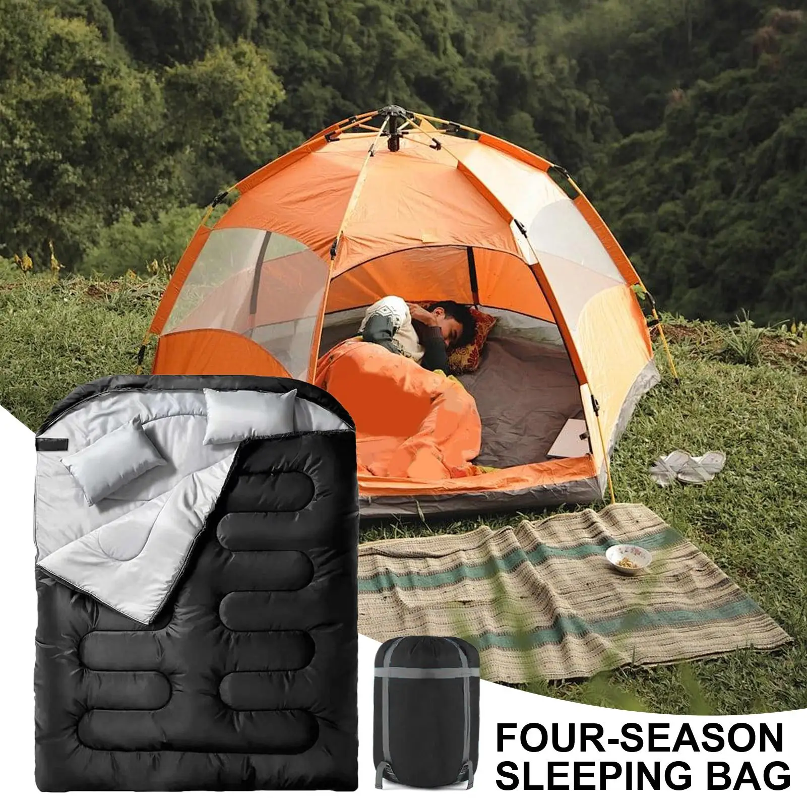 Nový outdoorové kemping kolem spací brašna pro 2se lid flauš rohož léto kemping spací brašna pro cestovní backpacking kemping