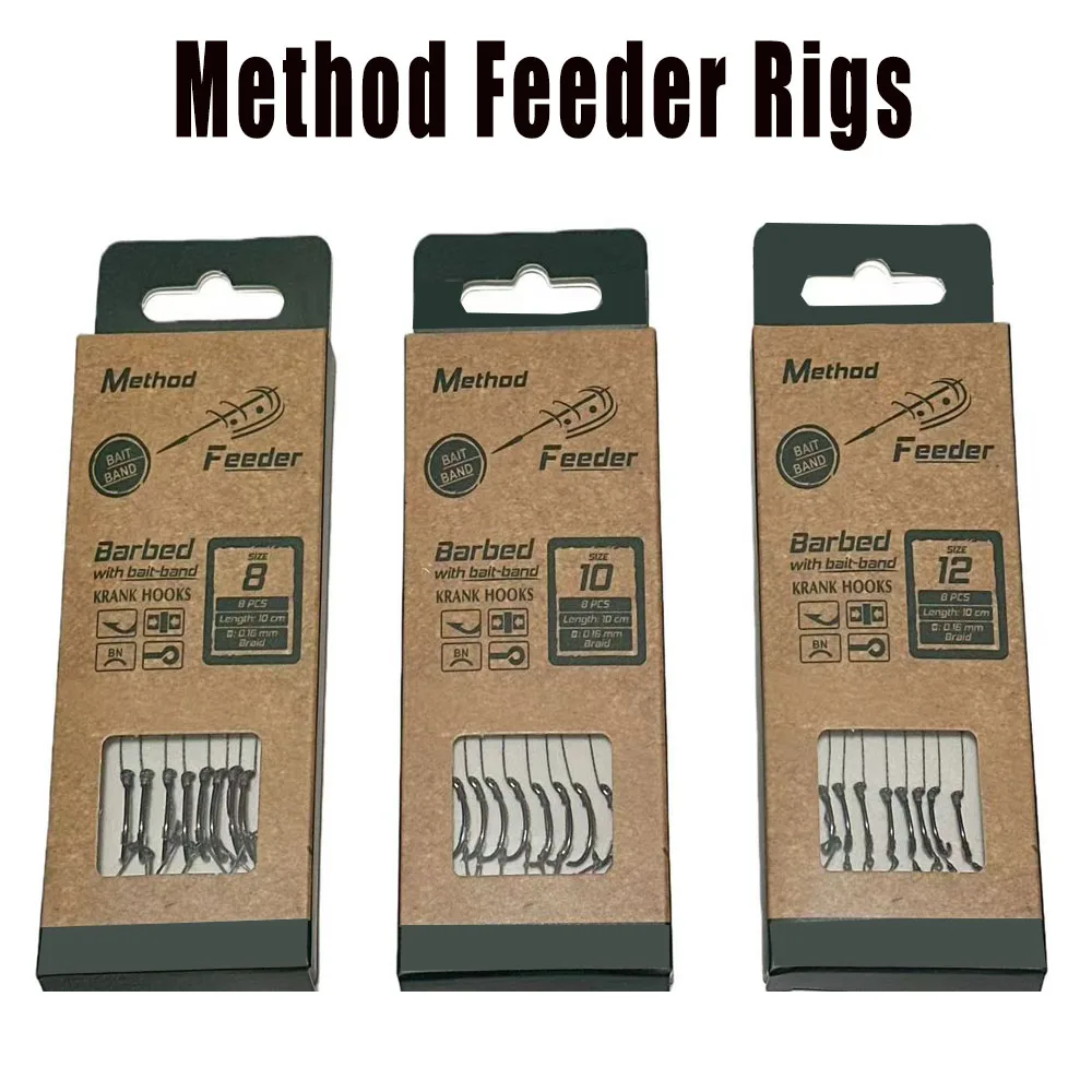 1pack/8pcs náhrada metoda přípoj rybaření rigs s vysokopevnostní opletené linky & ostrý ostnatý háčků (sizes 8-12)