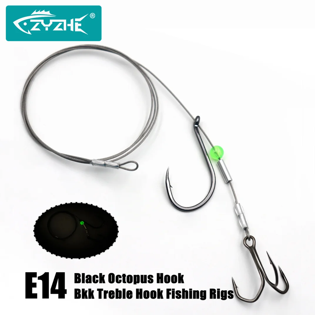 ZYZHE 1ks rybaření oštěp rigs po jednom J hák s výšky háčků 49 vlákna ocel linky live/dead nástraha rigs pro sumce snaper