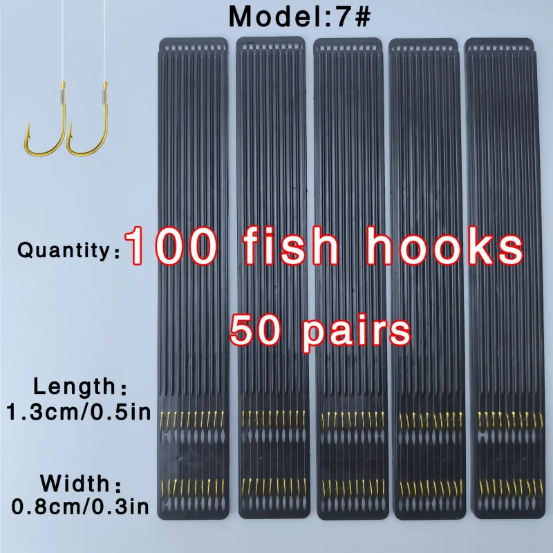 100 ryba hooks/50 páry, dvojitý háčků s ostny, pre-tied rybaření linky, ostrý tipy a odolný linky - vhodný pro sladkovodní