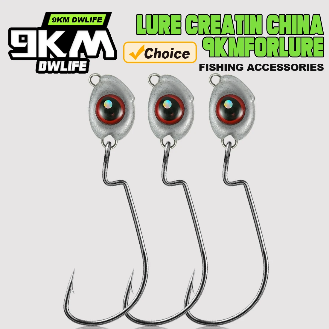 9KM 10ks plovoucí návnada přímočarou hlav ewg háčků texas přímočarou hlava hák 3D oči červ hák pro mořský sladkovodní