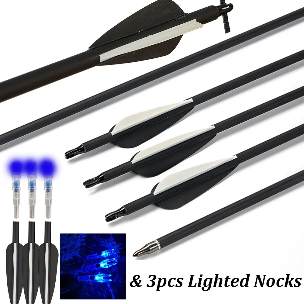 6/12pcs 30 palec uhlík šipky trn 500 s 3ks LED lighted nocks pro lukostřelba hon výstřel outdoorové noc hon šipky