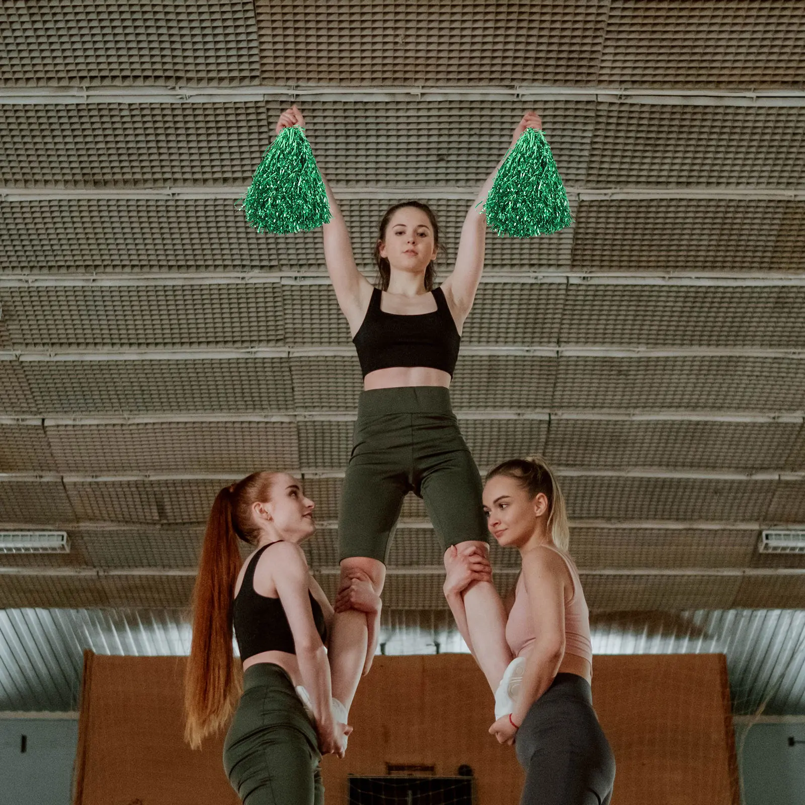 1pár cheerleading pom poms, non-fading metalické návazce, vhodný pro děti & dospělé, tančí týmový sportovní