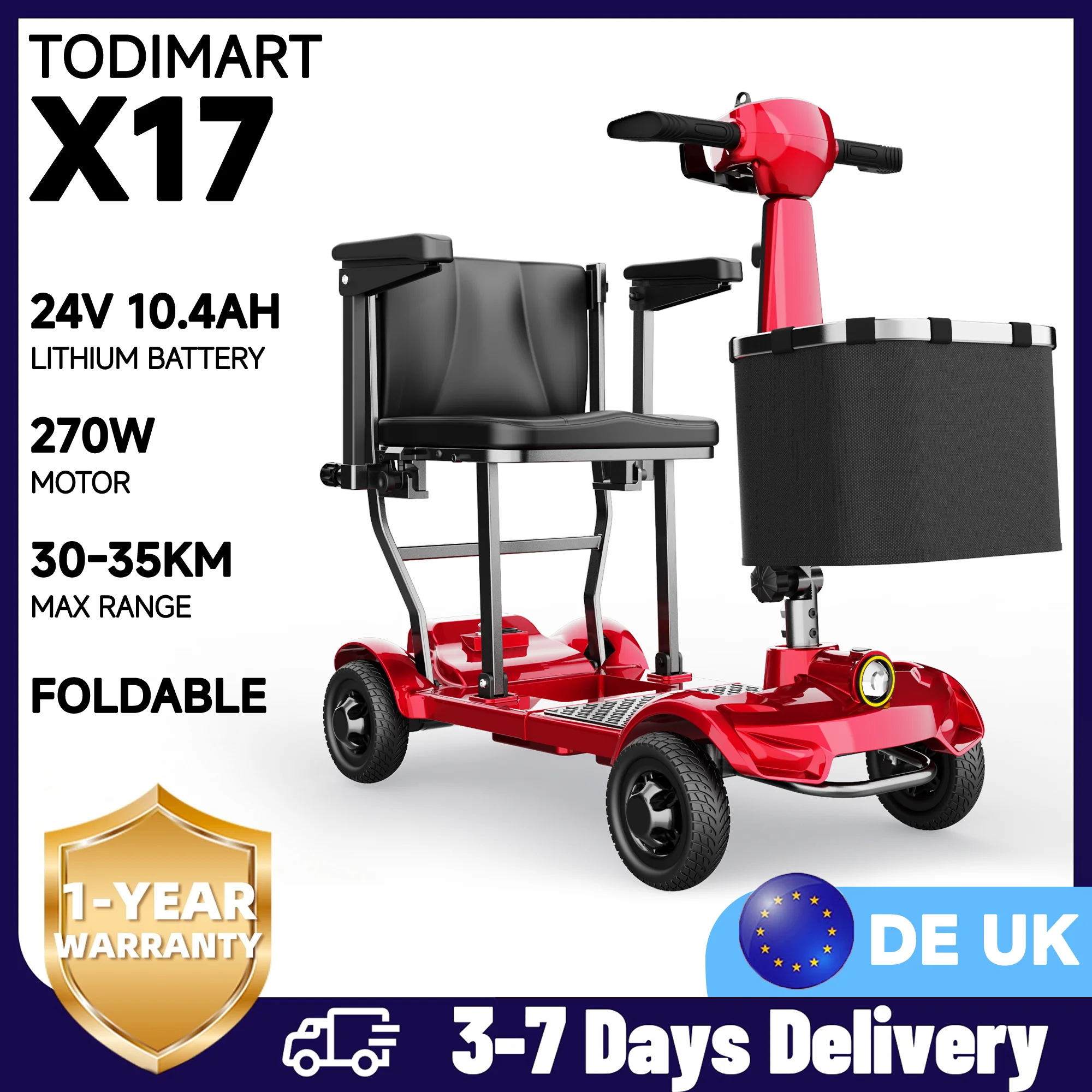 Dospělý 4 kolo elektrický koloběžka, skládací seniory mobility koloběžka golf vozík 20KM dosah 24v 10.4AH 270W 7km/h maxi rychlost 120kg