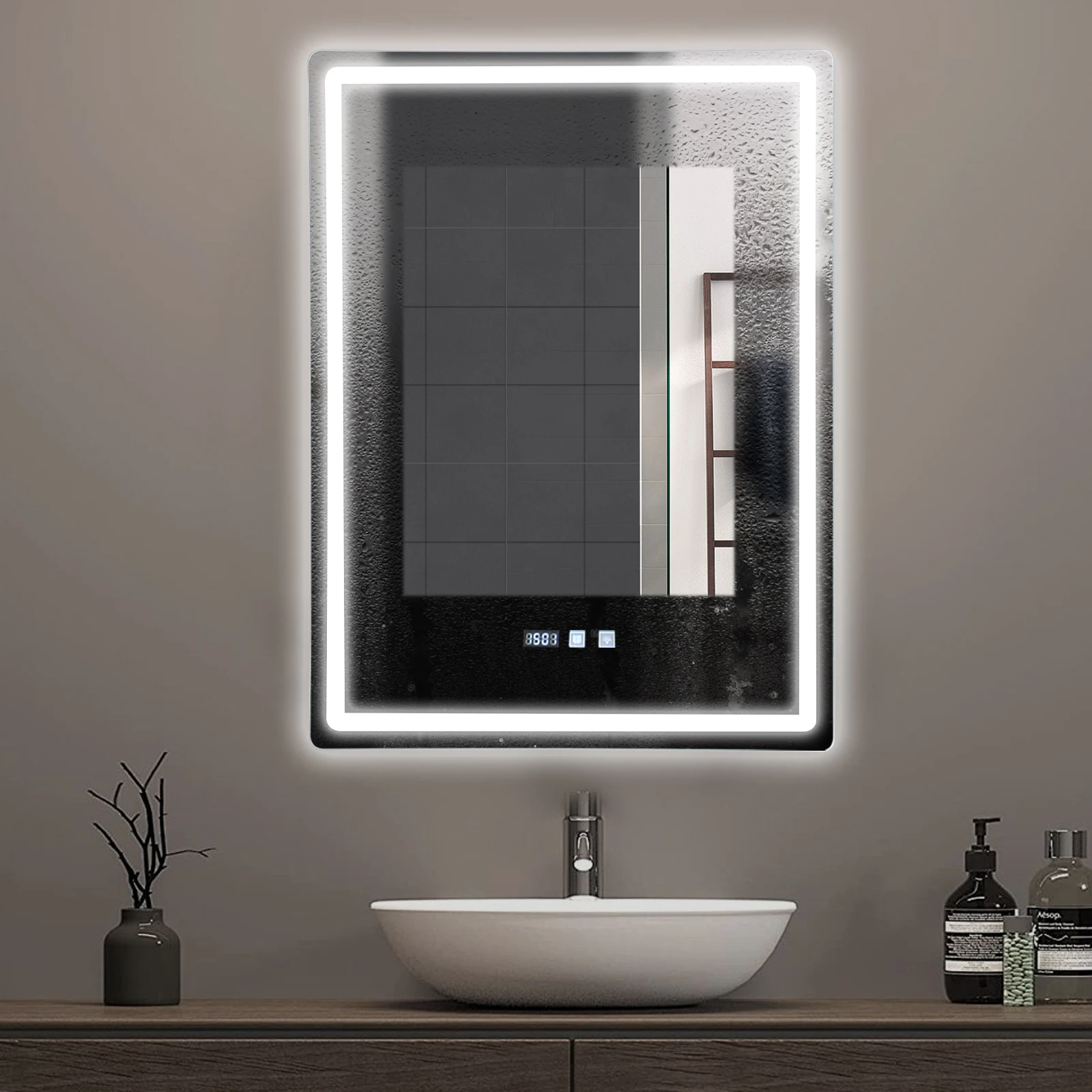 Obdélník chytrý zrcadlo dotek obrazovka LED koupelna zrcadel vysoký definice anti emf mlha zeď montuje lighted zrcadlo espejos de baño