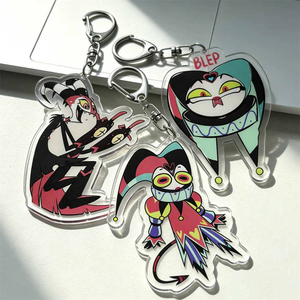 Kreslený anime řada helluva blitzo keychains šéf kroužek na klíče pro příslušenství brašna přívěsek klíč běžící pás prsten šperků fanoušci kamarad dárky