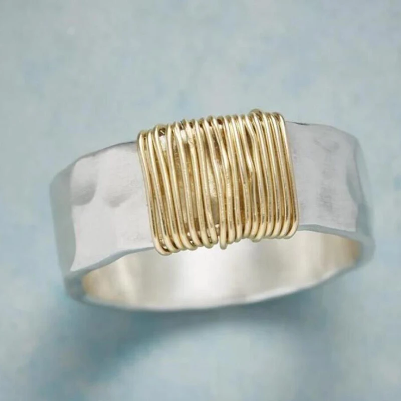 Huitan nový módní texturované design ženy kroužky pro svatební zlato barva twining drátky kreativní ženské kroužky večírek prohlášení šperků