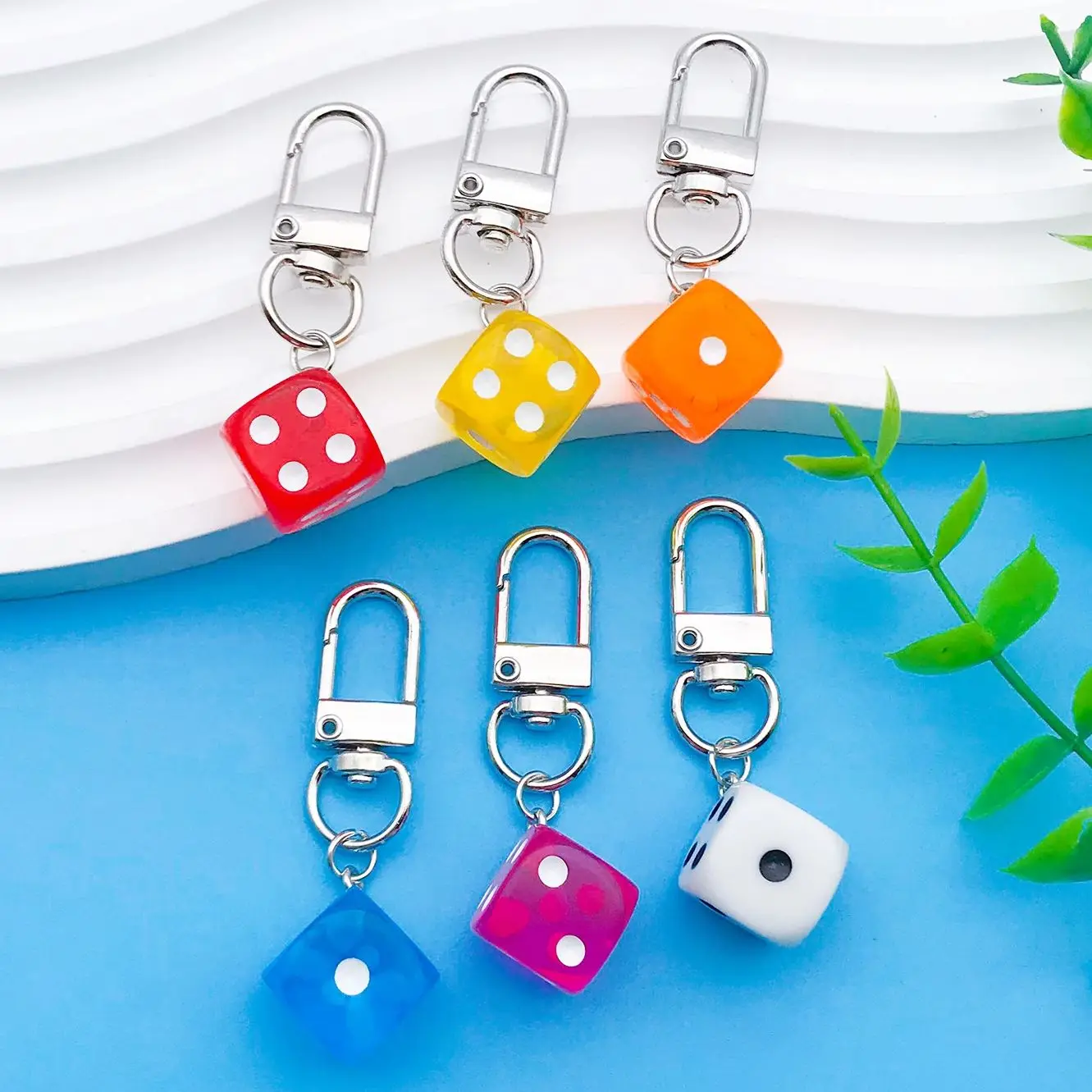 6pc/lot kreativní malý příslušenství pro auto klíčenka mini přívěsek batoh hangings kroužek na klíče originalitu akryl hrací kostka klíč běžící pás prsten