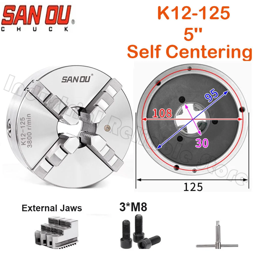SANOU K12-125 4 čelist 125MM 5'' sebe středicí soustruh neuspět kalené reverzibilní držák nářadí pro vrtání frézování dřevoobráběcí