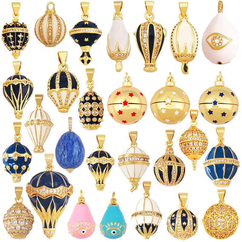 Romantické módní modrá bílá horké vzduch balón půvab přívěsek, opravdový 18K zlato pokovené oko velikonoce vejce měď řetízek šperků dodat R22
