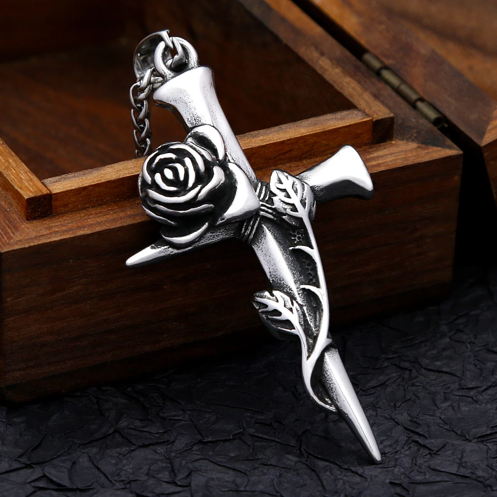 Vintage růže kříž přívěsek řetízek nerez ocel punková amulet náhrdelníky pro muži ženy číslo jednotné šperků dárky dropshipping