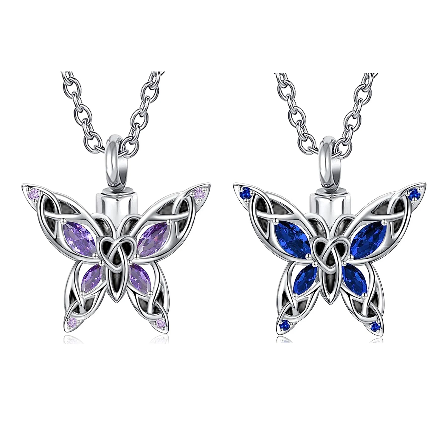 Motýl oharek držák urna přívěsek řetízek nerez ocel kremace šperků s 20" běžící pás náplň souprava