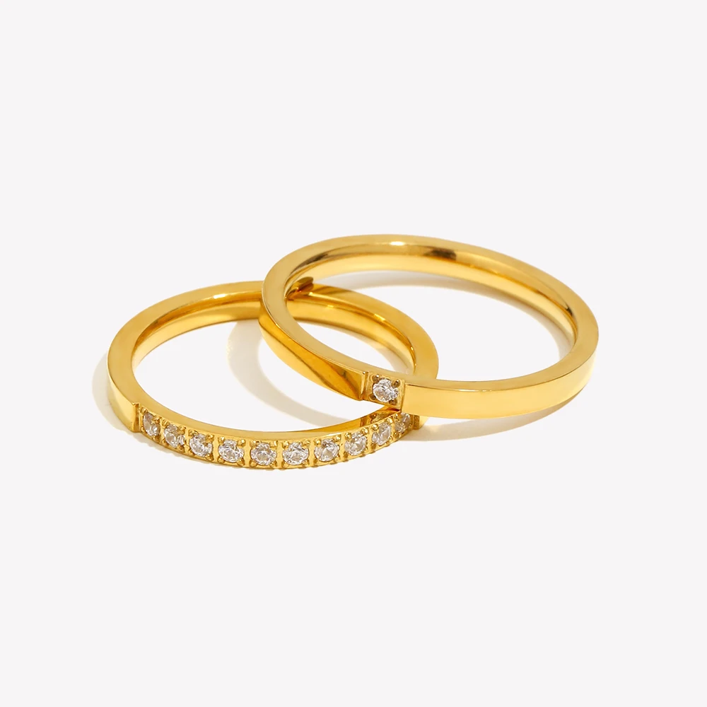 E.b.belle AAA CZ naplněné hubený zlato kroužky pro unisex ženské voda odolné broušené sklo prsten zlato pokovené nerez ocel prsten