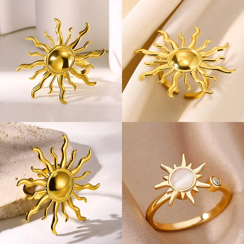 Exaggerated slunce kroužky pro ženy zlato barva nerez ocel slunce nastavitelný prsten móda výročí večírek šťastný šperků dar