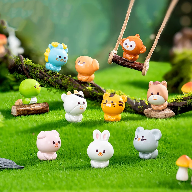 1set mini Čínské zvěrokruh figurky 12 zvířata miniaturní plocha ornamenty pro bonsaj sad krajina dekorace příslušenství