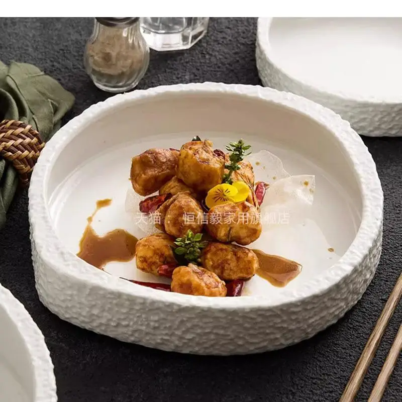 Čistý bílá nepravidelný keramika kámen střih jídelní talíř salátové dezert miska těstoviny molecular kuchyně neobyčejný nádobí