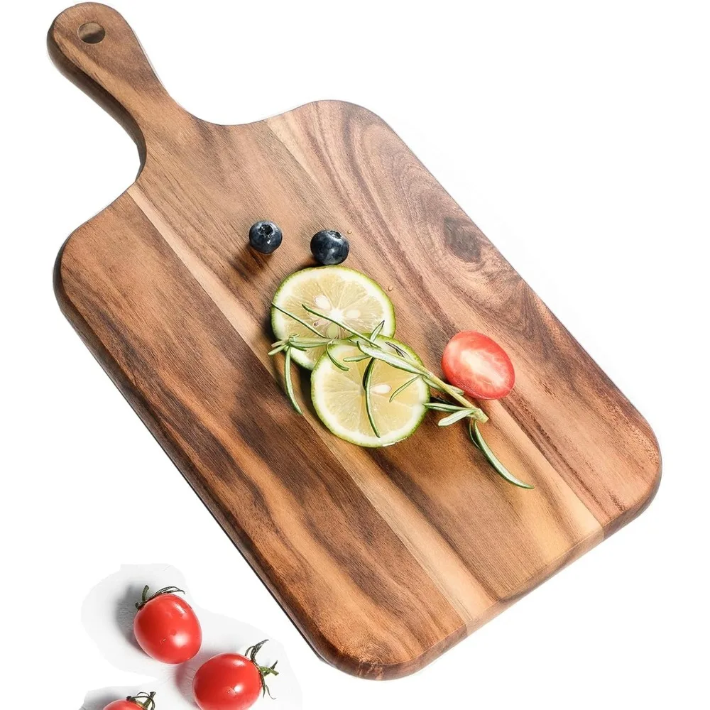 Akát dřevo řezací deska sýr chléb pizza bedna na láhve čtverec bedna na láhve dvojitý sided dřevěný řezací deska s madlo konec řezací deska