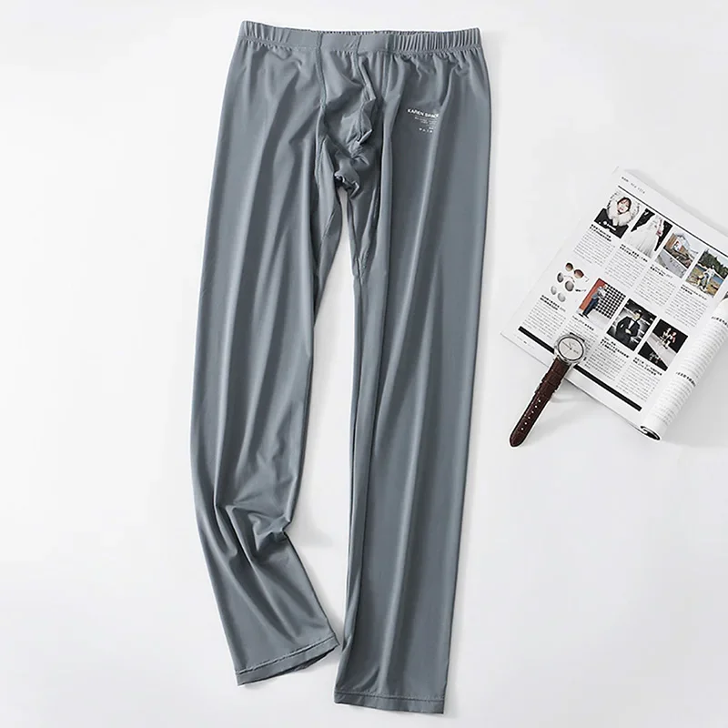 Pánská led hedvábí dlouhé johns homme oblečení na spaní spodky dno kalhoty ultratenké tepelný spodky bottoms