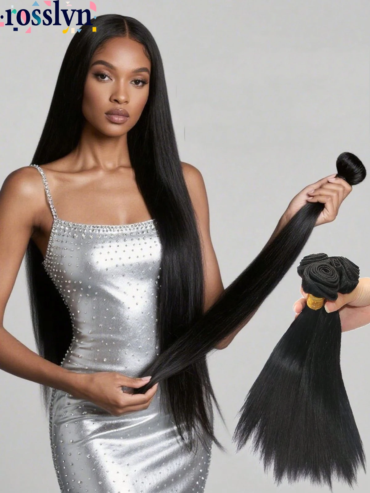 Rosslyn přímo člověk vlasy tkát svazky přírodní černá hedvábná kost přímo vlasy prodlužování měkké hladký dvojitý útek hustý