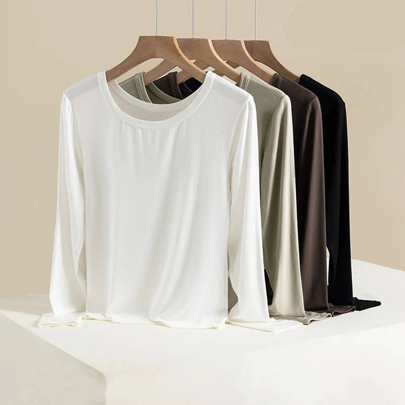 Ženy tepelný spodky 2024 zima výstřih do O dno košile celistvý bílá černá dlouhé rukáv základní tričko ohřev vlákno pulovry topy