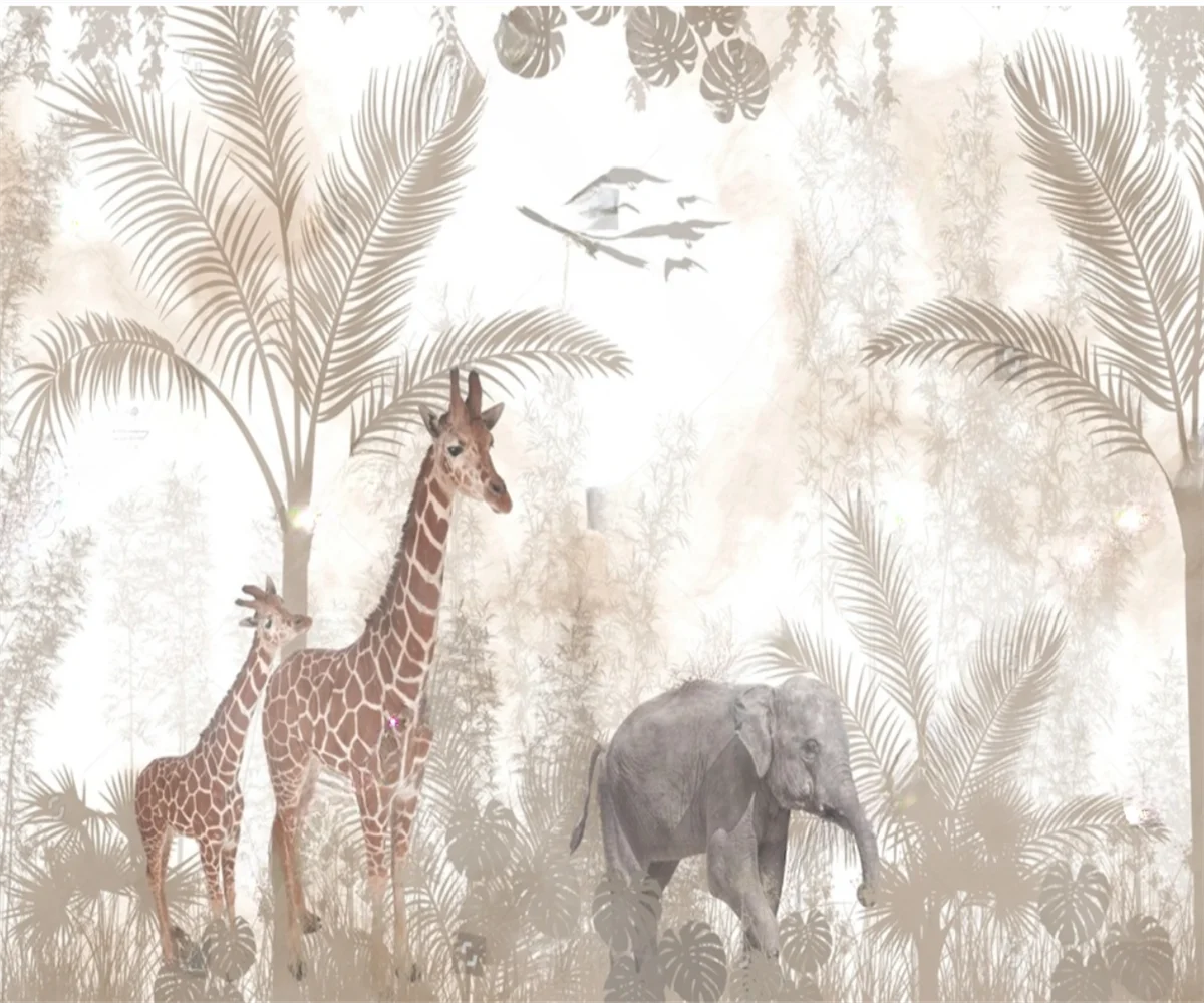 Nestandartní tapeta tropické rainforest rostlina aršík nástěnnou slon žirafa živočich dekorace malba růžová děti 3d tapeta