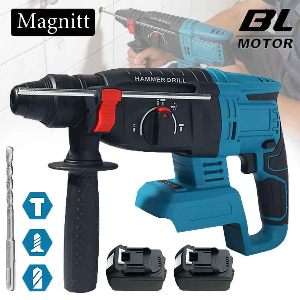 26mm bezuhlíkový elektrický kladivo vrtačka multifunkční rotační akumulátorové rázový vrtačka dobíjecí energie nářadí pro makita baterie špendlík