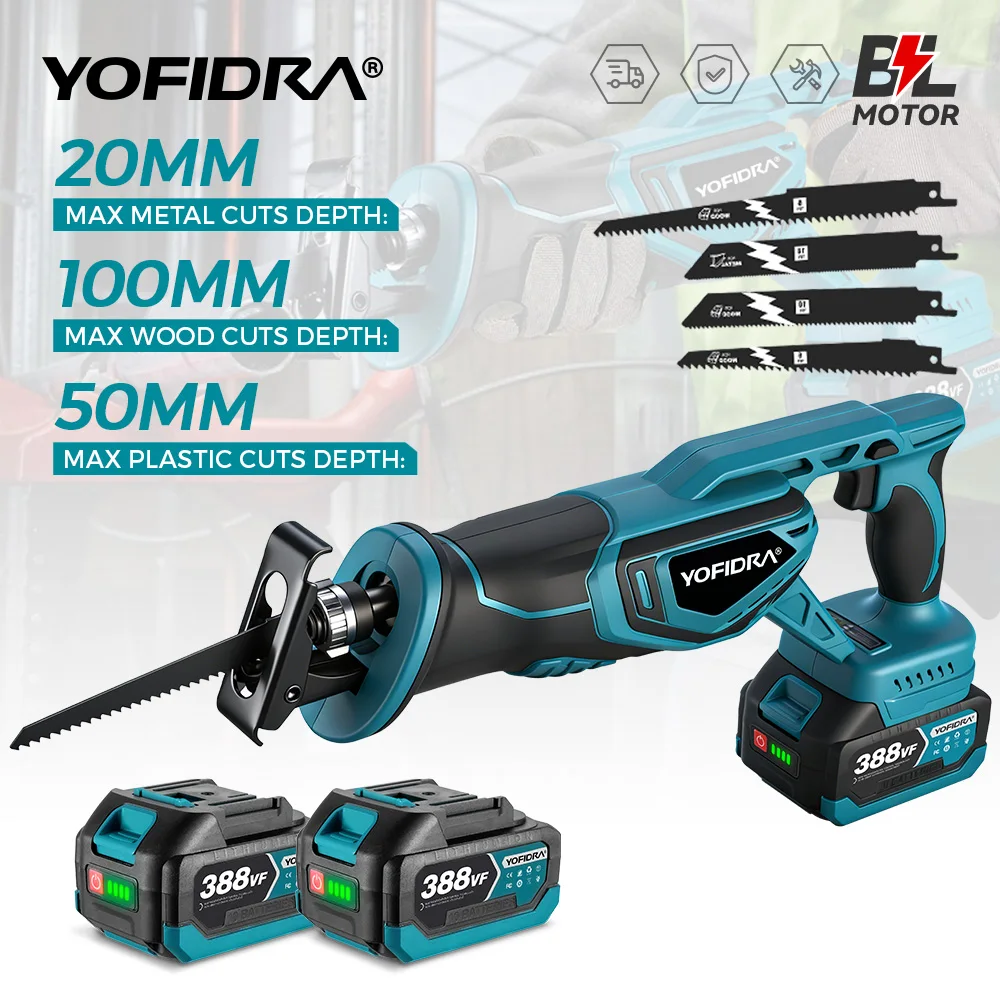 YOFIDRA bezuhlíkový šavlová pila pilka šavle multifunkce pila pro kov dřevo dýmka řezací nářadí pro makita 18v baterie špendlík