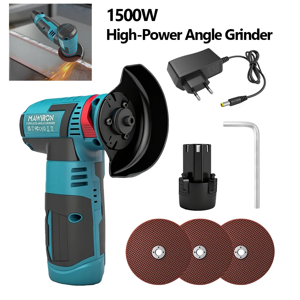 Úhel bruska, akumulátorové řezací broušení leštění, s disk, strana madlo, 1500 W nastavitelný špendlík, 125mm+ 3čepel disky