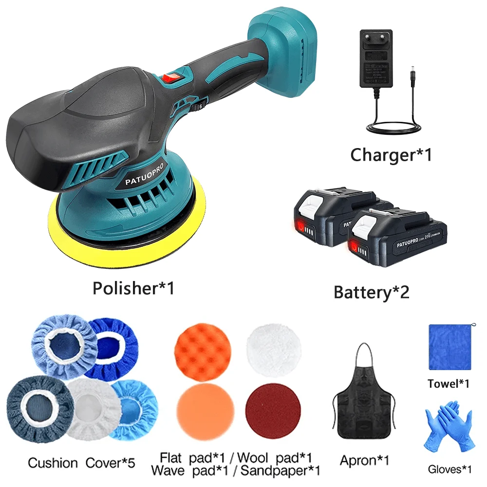 PATUOPRO 5000RPM 150MM akumulátorové auto leštička 6pro ozubená z rychlosti nastavitelný domácí elektrický leštění stroj odpovídat makita 18v baterie