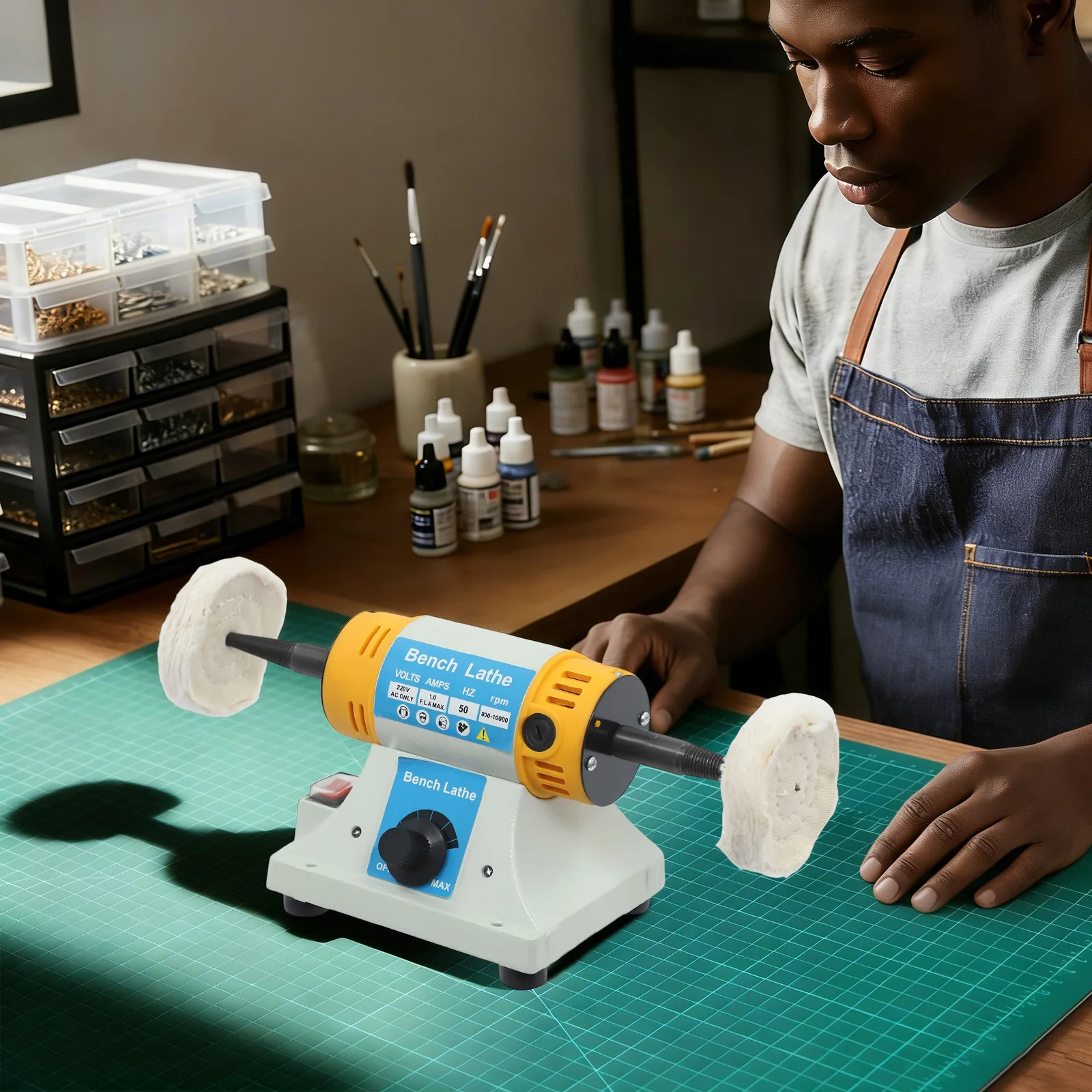 320W nastavitelný rychlost dvojí hlava leštění stroj 800-10000RPM, tabletop bruska šperků leštička s 2se látka kol
