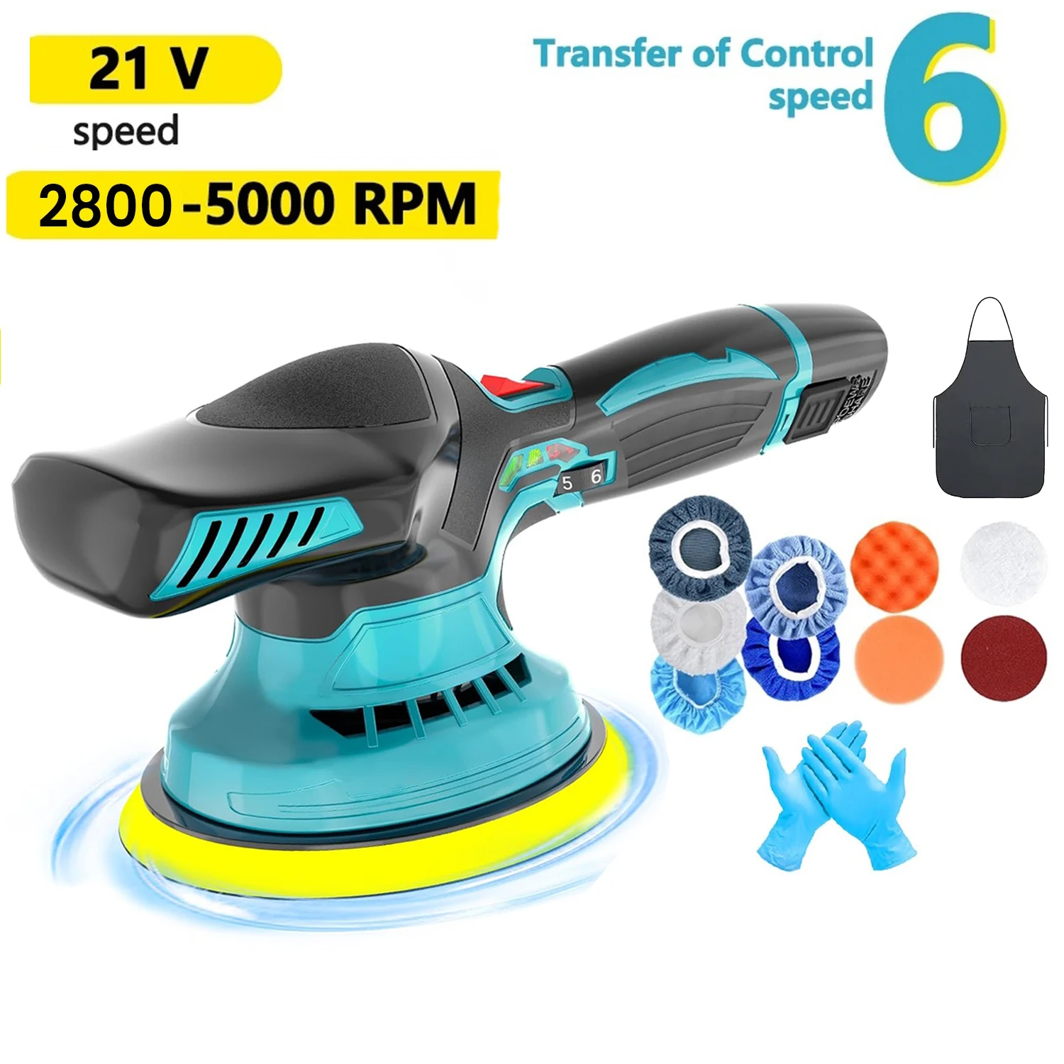 Akumulátorové buffer leštička, 6pro proměnná rychlosti, 2800-6000 RPM auto buffer leštička souprava s 2ks 3.0ah baterie pro auto leštění
