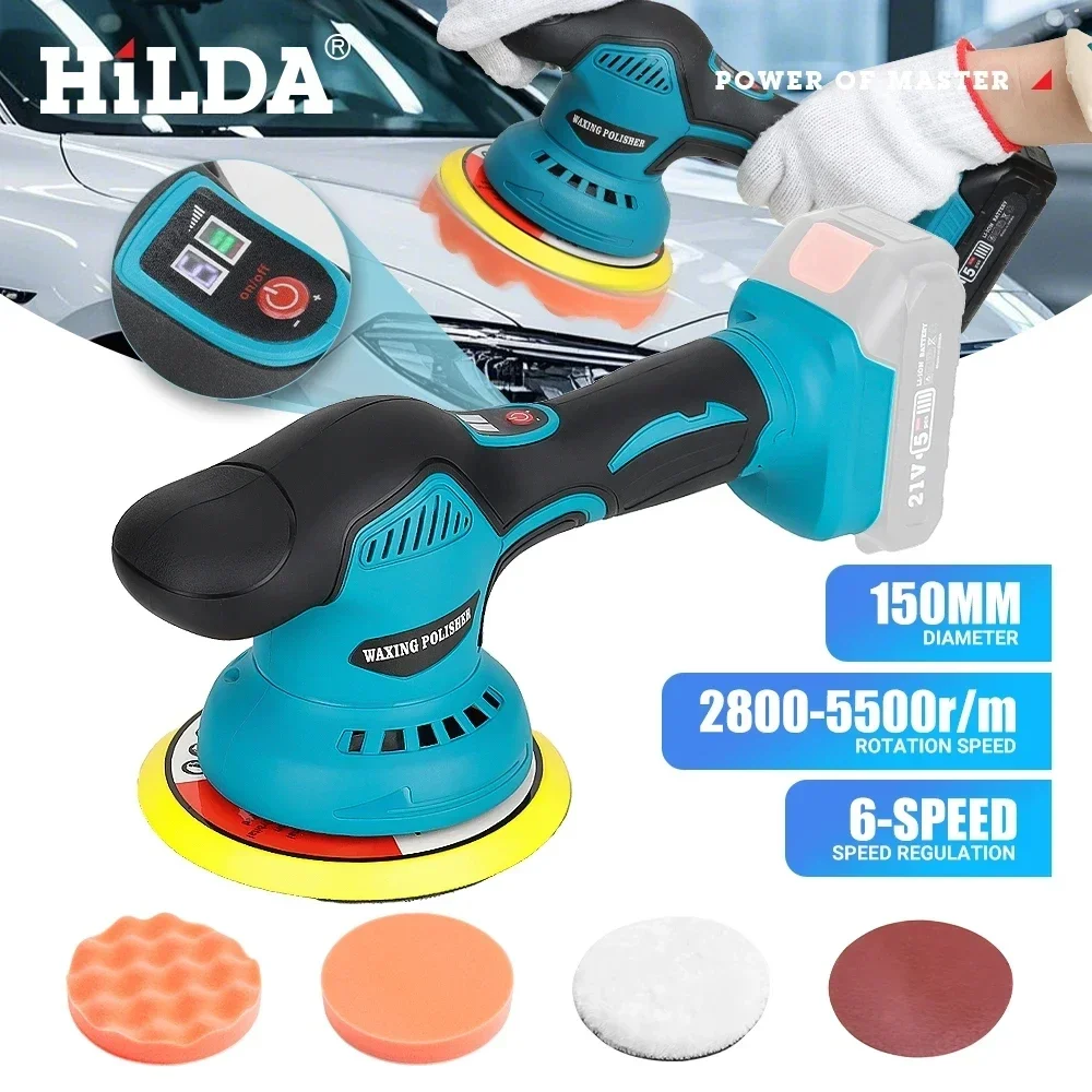 Hilda auto leštička 6pro ozubená digitální displej akumulátorové elektrický leštička auto auto voskovací leštění stroj pro makita 21v baterie