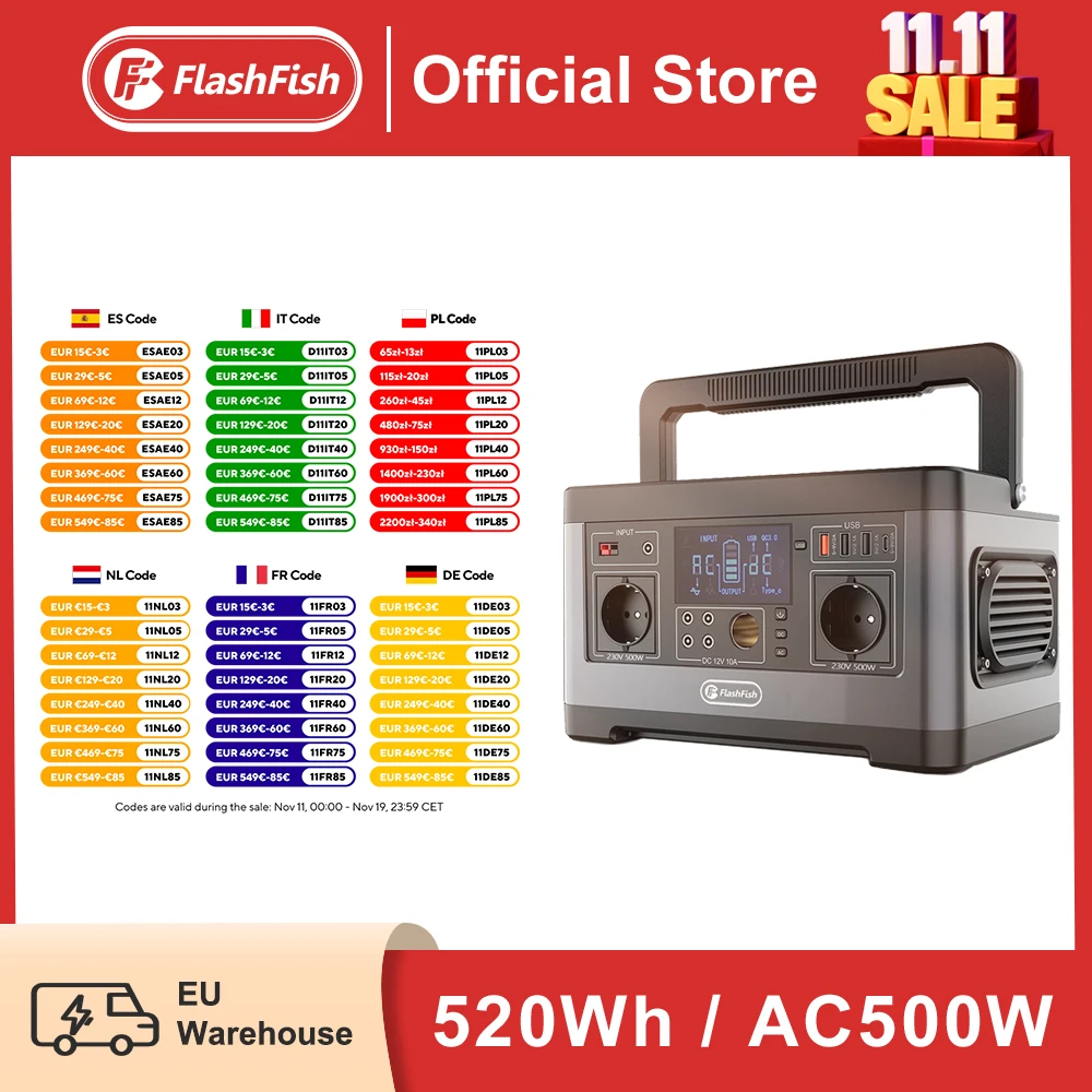 FF flashfish 230V 500w solární vyvíječ 520wh střídavého přenosné outdoorové energie nádraží velký schopnost llithium batterie vysoký energie dodat