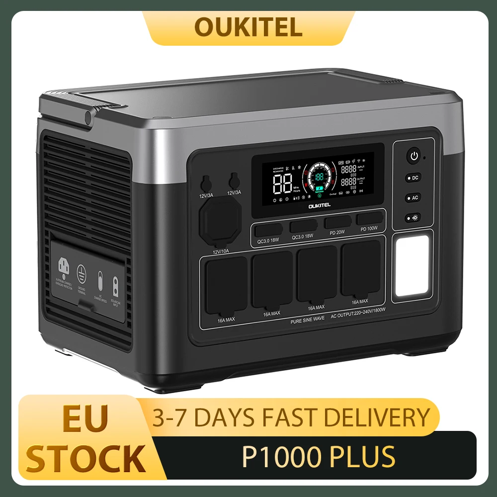 Oukitel P1000 PLUS přenosné energie nádraží, 1800W 1024wh solární vyvíječ s lifepo4 baterie, rychle nabíjení, chytrý app ovládání