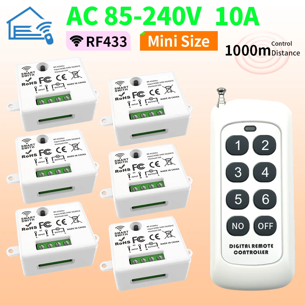 Bezdrátový daleký ovládání obvodový jistič, vstupní elektrické napětí ranging z 110 volts na 220 volts, jednokanálový elektromagnetické relé, 433 mhz receiv