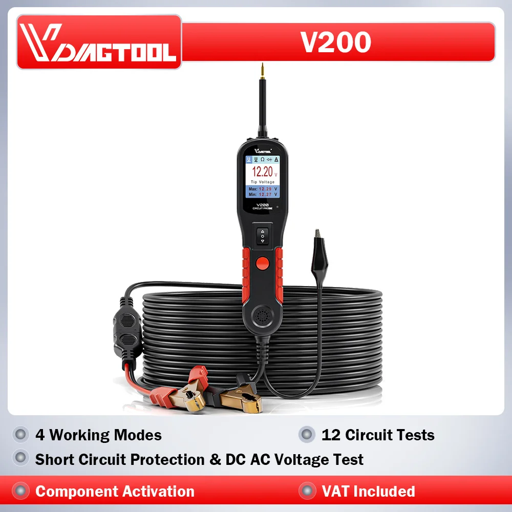 VDIAGTOOL V200 automobilové obvodový tester energie obvodový sonda souprava elektrický diagnostické nářadí 12V 24v auto sonda tester střídavého stejnosměrný dioda odolnost elektromagnetické relé tavná pojistka aktivovat prvek test přívěs lehký test