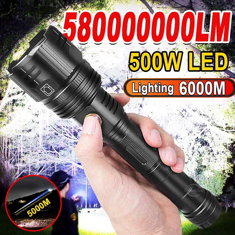 Nanejvýš poweful LED baterka 5800000LM silná lehký pochodeň dobíjecí lampa vysoký energie dlouhé šot 6km taktická flashlights kemping
