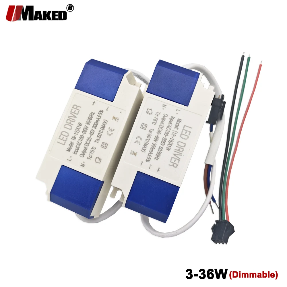 1ks konstantní proud 300MA LED ovladač stmívatelné 3-5W 4-7W 8-12W 12-18W 18-25W 25-36W vstupní AC110V 220v na stejnosměrný osvětlení transformátor