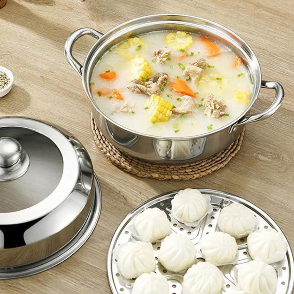 Nerez ocel parník zahuštění polévka hrnec parník dvojitý zahuštění velký klec šuplík parník domácnost binaural polévka hrnec